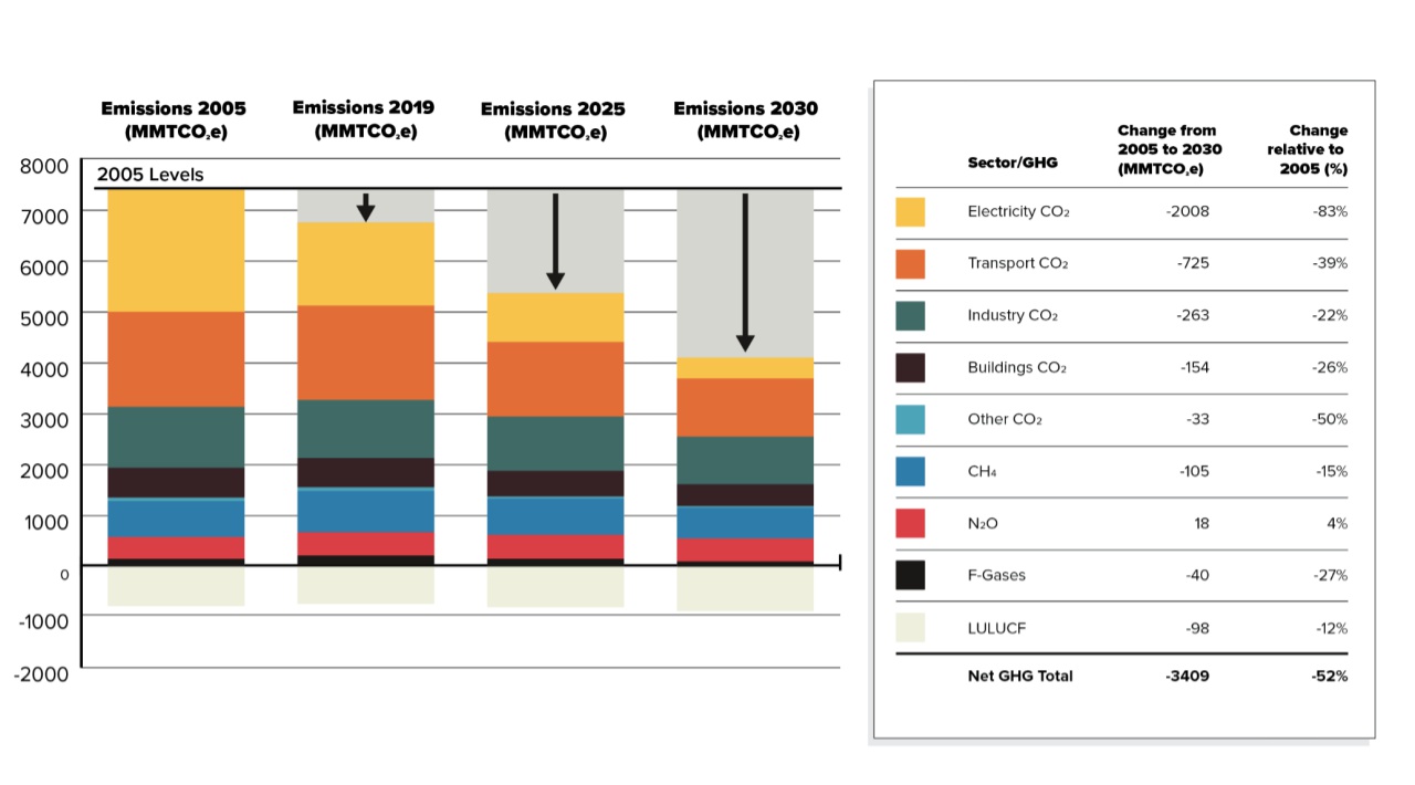 - It is possible for the United States to meet its climate commitments in the Paris Agreement and halve greenhouse gas emissions by 2030, but the effort will rely heavily on rapid decarbonization in the electric power sector, according to a report released Monday by a broad coalition of clean energy advocates led by Bloomberg Philanthropies.